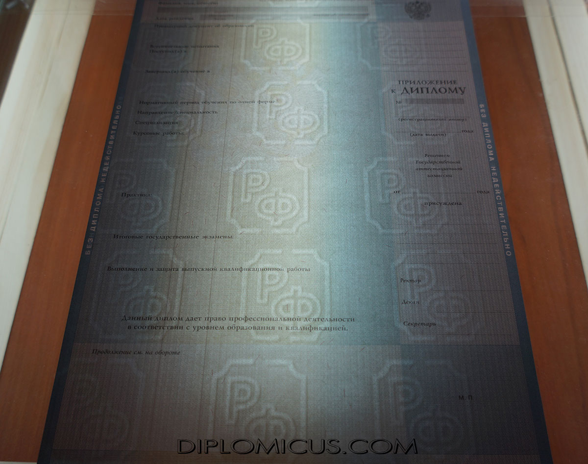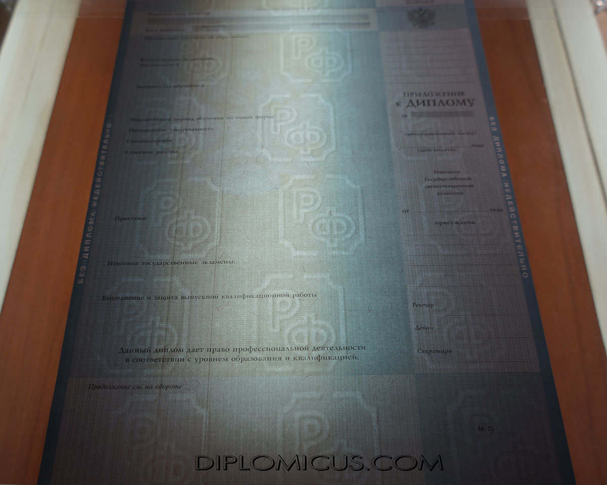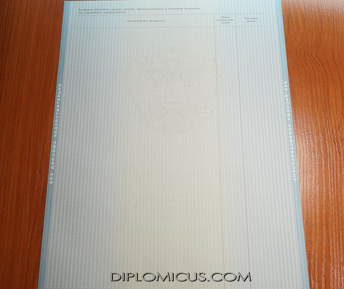 В соответствии с выбранной специальностью будет напечатан вкладыш со всеми дисциплинами, итоговыми оценками, общим количеством часов, государственными экзаменами и пройденными практиками, дипломными и курсовыми работами. Также на каждом документе есть оригинальная мокрая печать и подпись ректора учебного заведения, год выпуска. Во время выполнения заказа, мы учитываем все пожелания клиента по поводу необходимых отметок и записей. Все это формирует цену на документ.